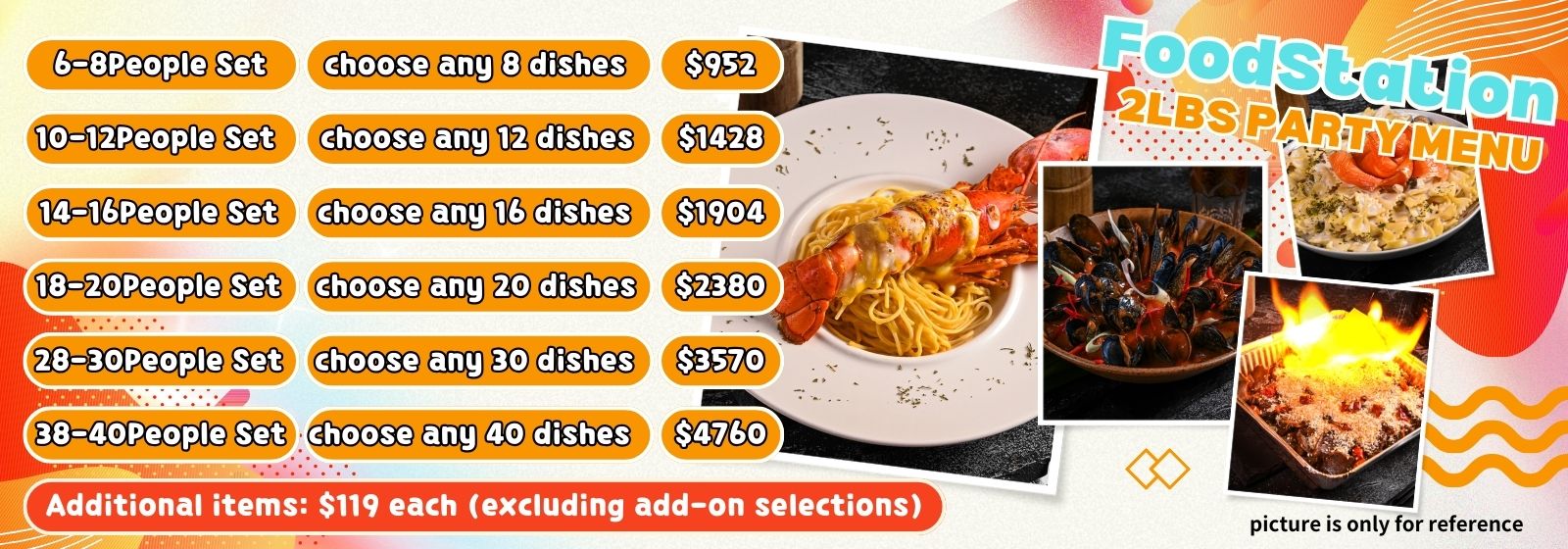 Rewards a dish of Food Station 2lbs menu food, valued at $119 per dish.
