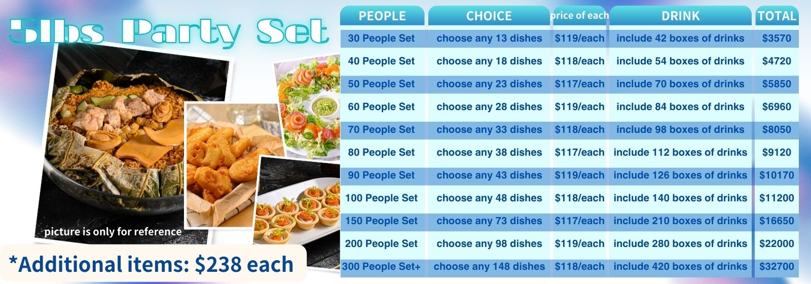 One-stop catering service, providing up to 60 different types of self-selected food, always making your wonderful time and leaving the most delicious memories